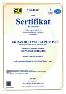Компания «УКРАС» внедрила стандарт FSC ™, который подтверждает, что она использует древесину и древесные материалы, поступающие из строго контролируемой цепочки, от сертифицированного леса до обработки и производства.